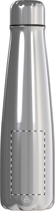 Trinkflasche aus recyceltem Edelstahl mit Deckel in Kontrastfarbe. Füllmenge: 600 ml.